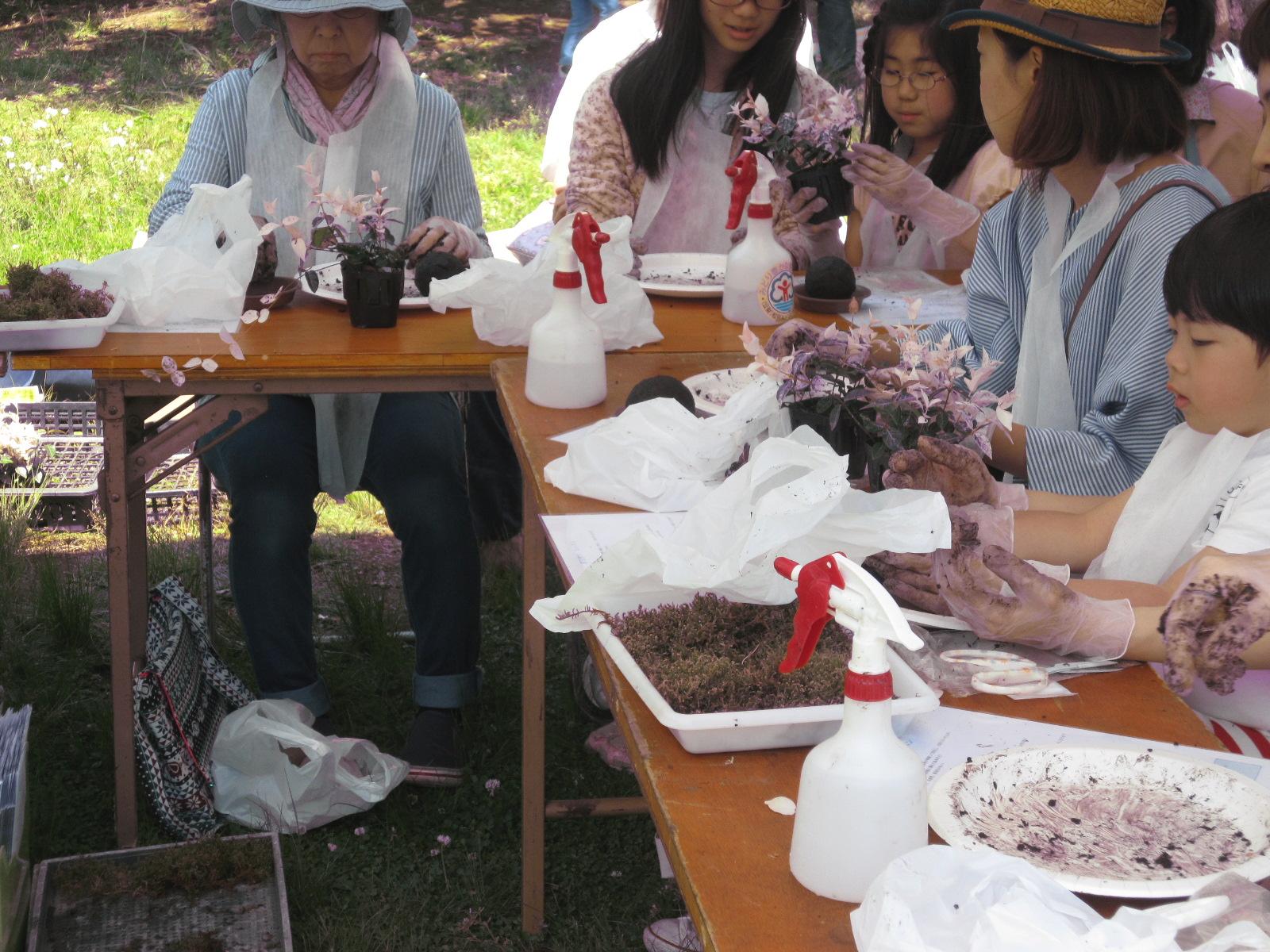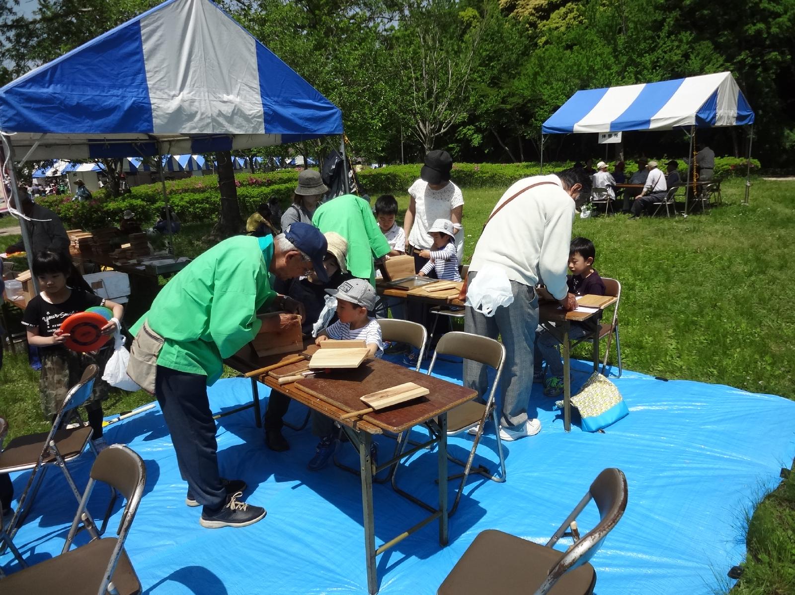 当日は約14,300人もの方がご来場くださり、緑に囲まれた会場内では、大勢の方が植木・花・野菜などのお買い物を楽しまれたり、自然と触れ合う遊びや工作などを体験されていました。