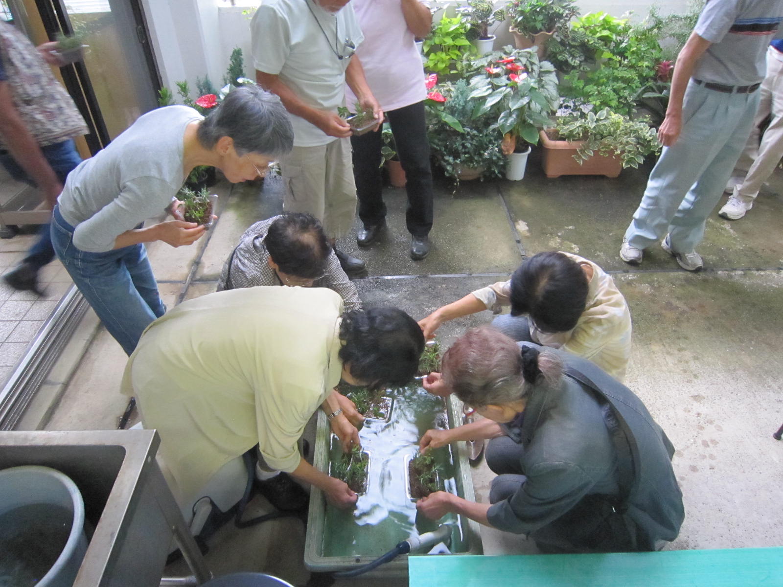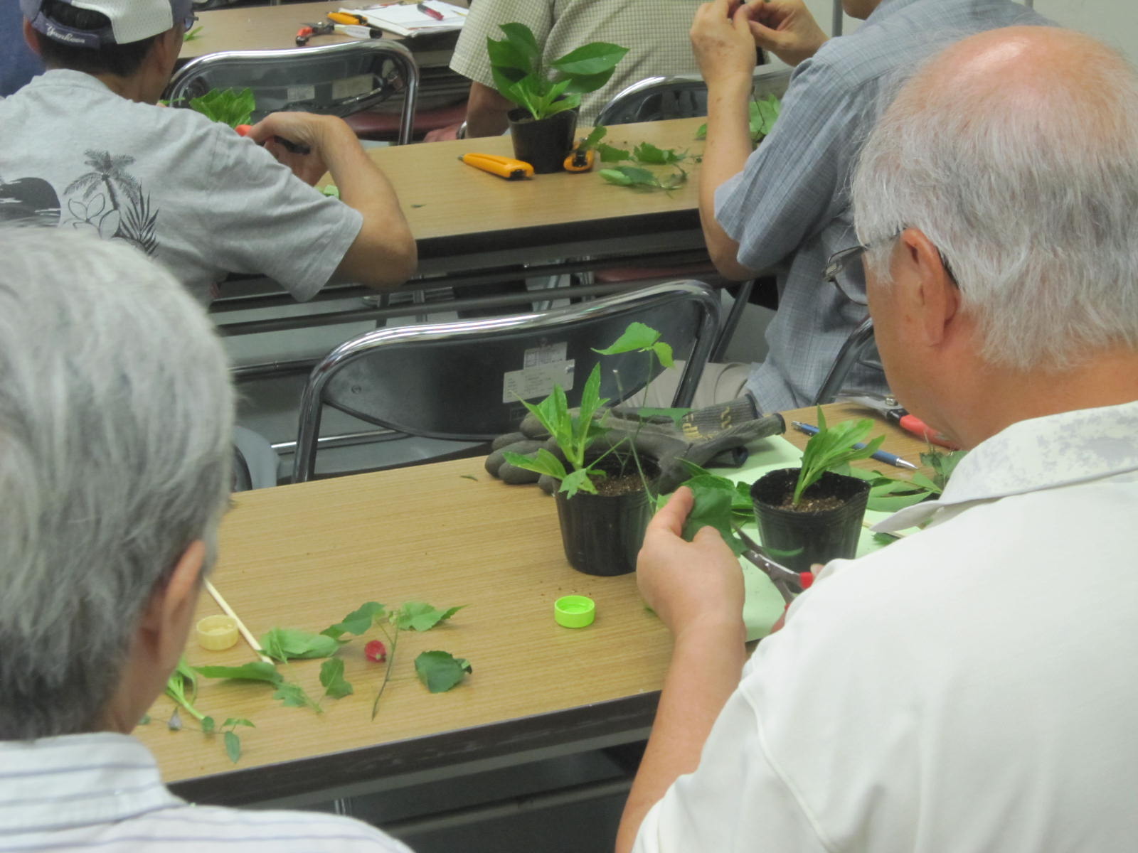 今回は挿し芽・挿し木の方法などをテーマに、講師の白瀧先生の説明を受けた後、参加者の方々に実際に挿し芽・挿し木の体験をしていただきました。